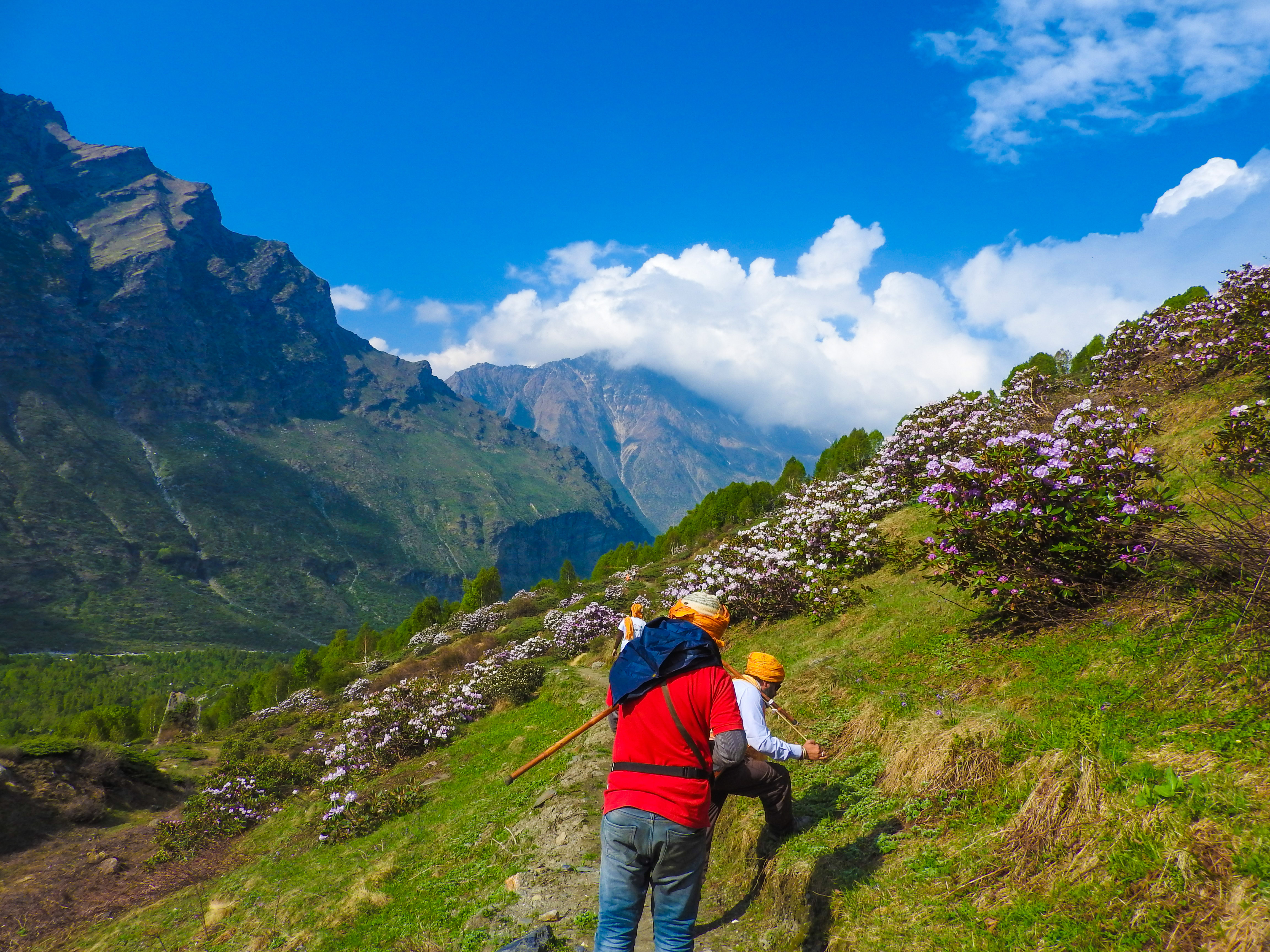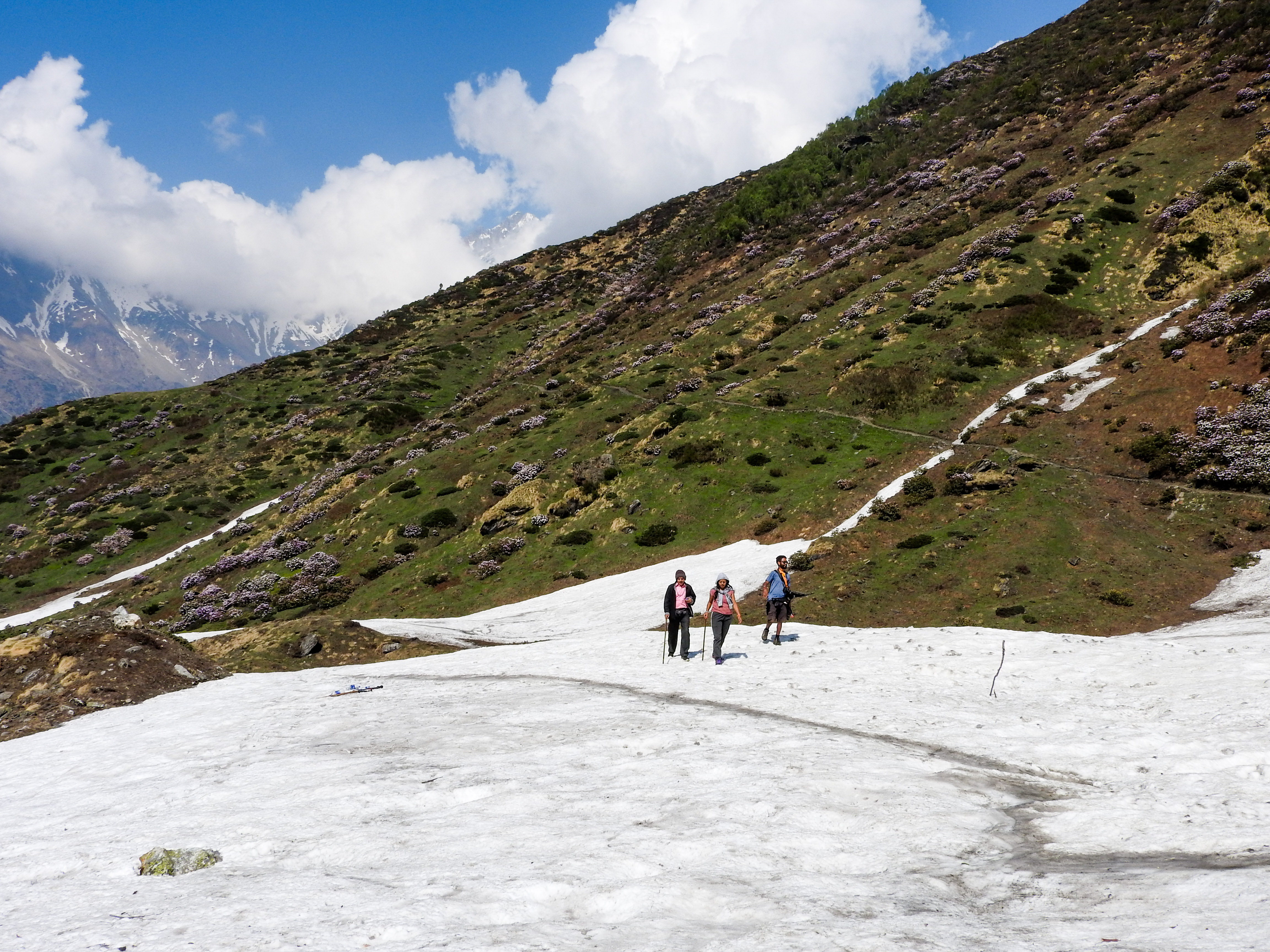 Panchachuli also known as Nyola locally is group of five peaks of eastern Kumaon Himalaya range located in Darma valley. The Nyola yangti (river) is originated from Panchachuli glacier. Dantu and Dugtu villages have settled on the both side of Nyola yangti. Distance of the Panchachuli base camp is 4 km from these villages, we can easily reach base camp form Dantu-Dugtu village. This valley is endowed with nature. Rich with flora and fauna, various types of aromatic flowers, medicinal plants, herbs, berries and wild animals are seen in the Bugyals.